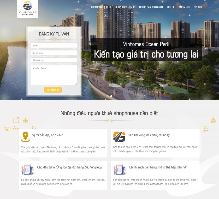 Thiết kế landingpage bất động sản tại Vĩnh Phúc, website bất động sản cần chú ý đến giao diện bắt mắt, kích thích khách hàng, từ đó tăng tỷ lệ khách hàng đăng ký thông tin, đúng với ý nghĩa của landingpage, ngoài ra cấu trúc landing page bất động sản cũng cần tối ưu, tốc độ load nhanh để giúp khách hàng truy cập nhanh chóng.